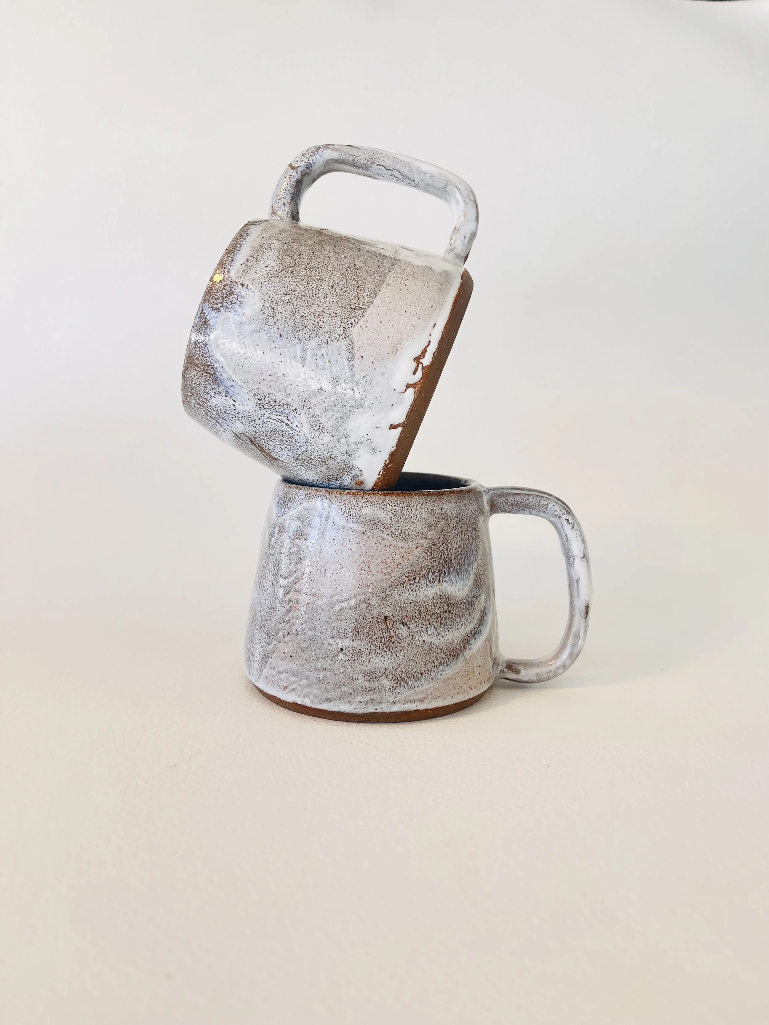 Handmade in Vermont, these monogram mugs balance structure and softness. Creamy glazes melt into deep blues, creating a fluid, one-of-a-kind surface. Each mug is finished with a custom letter—bold, modern, and just unexpected enough. Please use the form for customization. Made to order. Please allow up to 4 weeks for production before shipping.